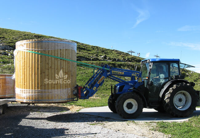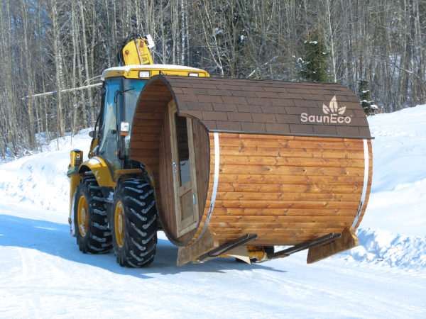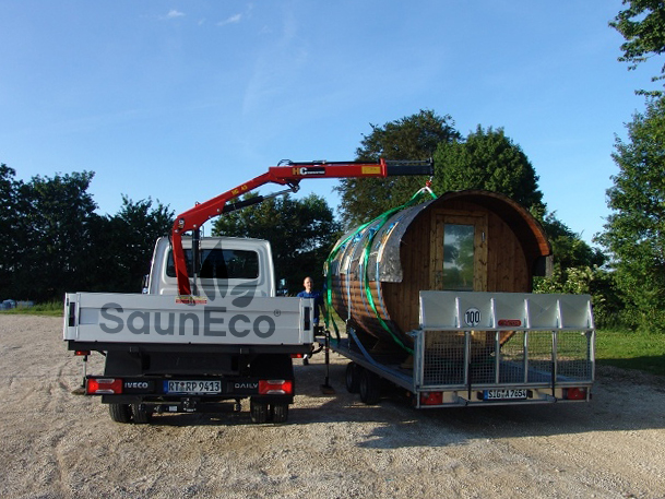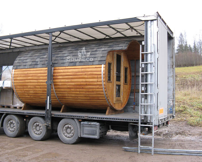 Our portable barrel saunas will be delivered with trailer and the price does not include the unloading. It is necessary to organize a forklift, tractor, crane or some other machine to unload the barrel sauna. For an additional charge we can organize the unloading and/or assembly for you.